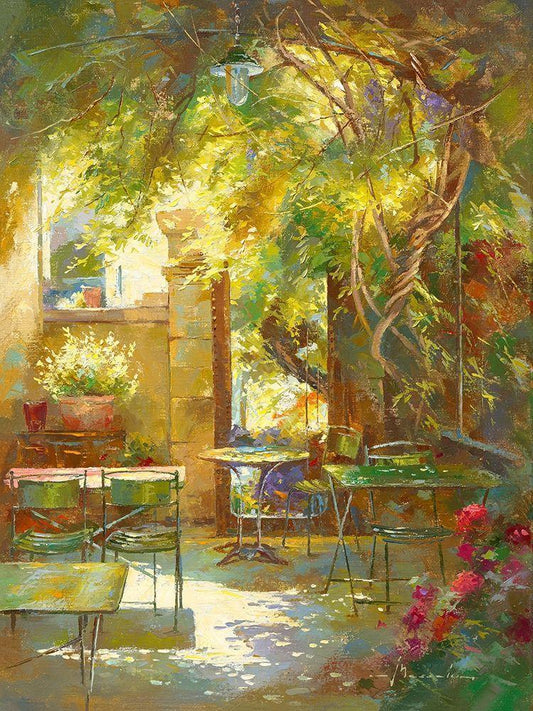 Terrasse - Le petit cafe White Modern Wood Framed Art Print with Double Matting by Messely, Johan
