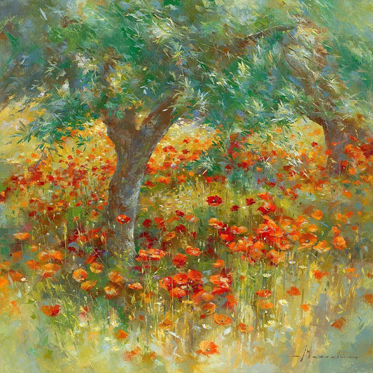 Champ des Cocquelicots White Modern Wood Framed Art Print with Double Matting by Messely, Johann
