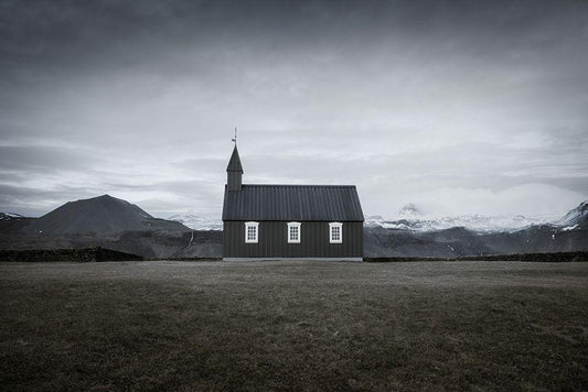 Black Church White Modern Wood Framed Art Print with Double Matting by Ding, Sunny