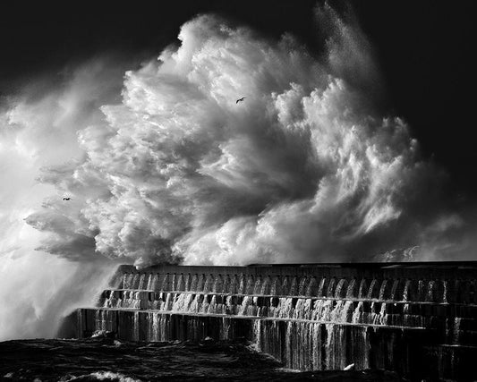 A Crashing Wave White Modern Wood Framed Art Print with Double Matting by Hermann, Maciej