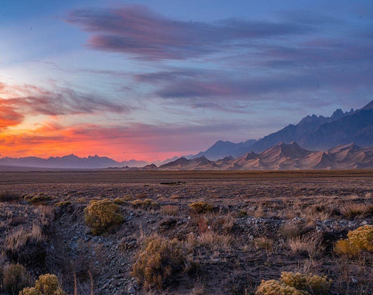 Sunrise on Sierra Nevada from Owens Valley-California White Modern Wood Framed Art Print with Double Matting by Fitzharris, Tim