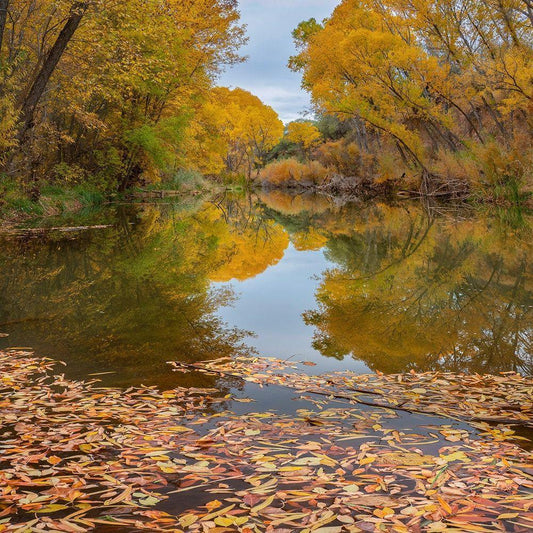 Cottonwood canopy-Verde River-Arizona-USA White Modern Wood Framed Art Print with Double Matting by Fitzharris, Tim