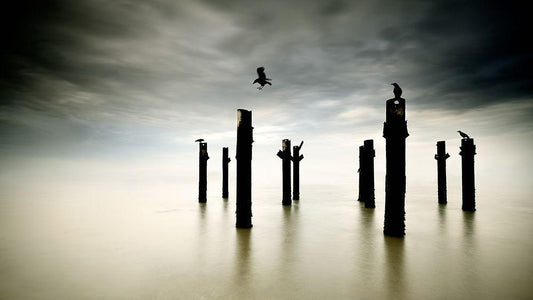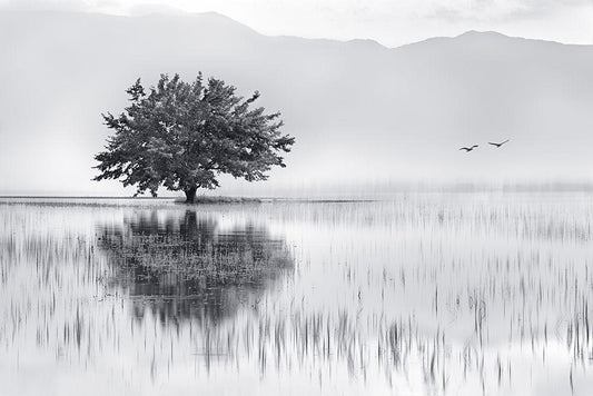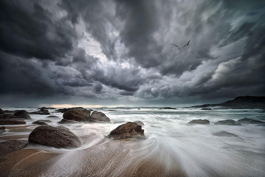 Flight over Troubled Waters White Modern Wood Framed Art Print with Double Matting by Pascual Buye, Santiago