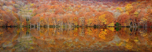 glowing autumn White Modern Wood Framed Art Print with Double Matting by Shibata, Sho