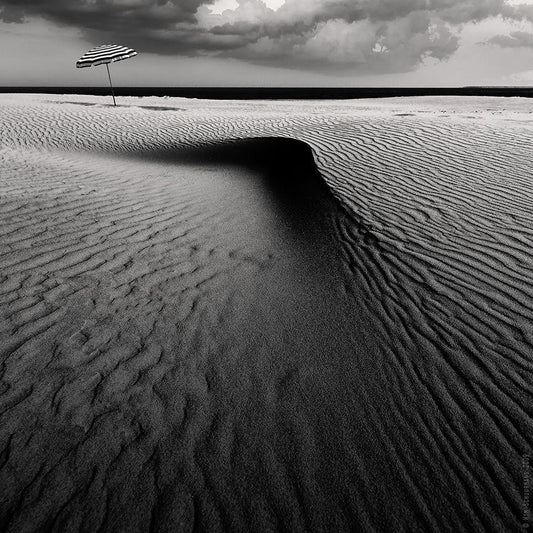 Umbrella on the beach White Modern Wood Framed Art Print with Double Matting by Schuurmans, Wim