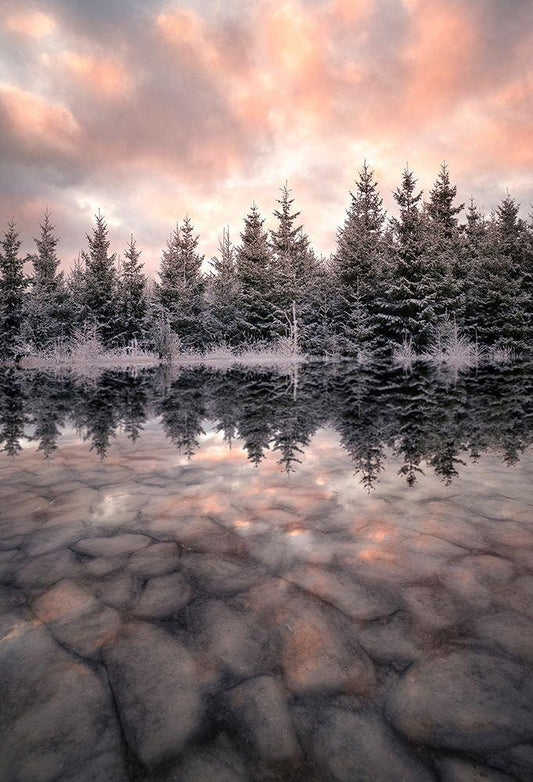 Lake in forest White Modern Wood Framed Art Print with Double Matting by Lindsten, Christian