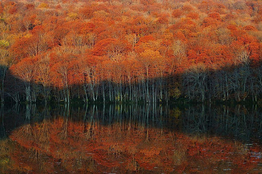 Yellow Autumn White Modern Wood Framed Art Print with Double Matting by Yatsushima, Yuki
