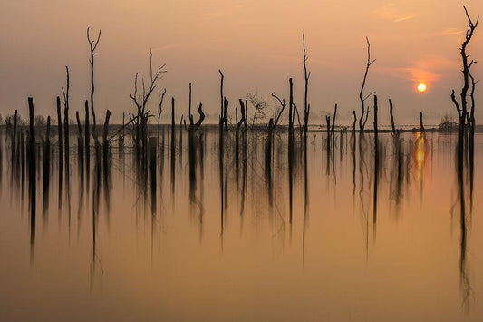 Lake Mattamuskeet Memory White Modern Wood Framed Art Print with Double Matting by Yu, Liyun