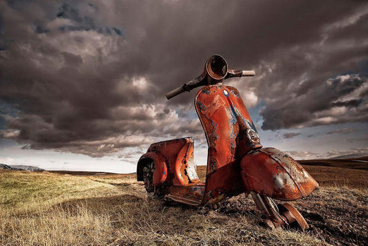 Vespa White Modern Wood Framed Art Print with Double Matting by H. Ingibergsson, Porsteinn