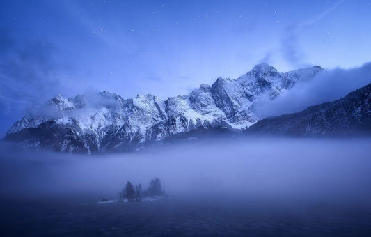 Wanaka Twilight White Modern Wood Framed Art Print with Double Matting by Zhang, Yan