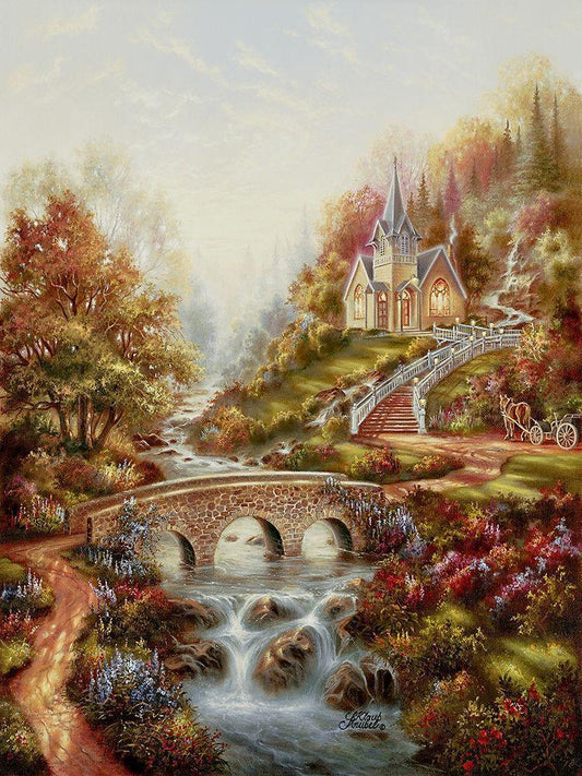 Mountain Chapel White Modern Wood Framed Art Print with Double Matting by Strubel, Klaus
