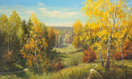 AUTUMN WAY II White Modern Wood Framed Art Print with Double Matting by Priscepa, Igor