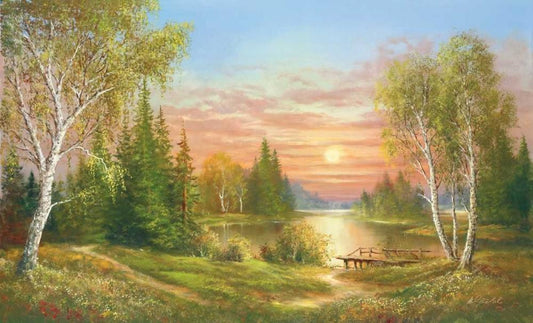 MISTY LAKE II White Modern Wood Framed Art Print with Double Matting by Fasani