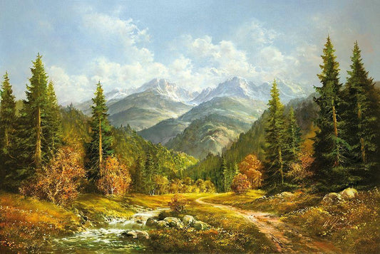 BROOK IN THE MOUNTAINS White Modern Wood Framed Art Print with Double Matting by Glassl, Helmut