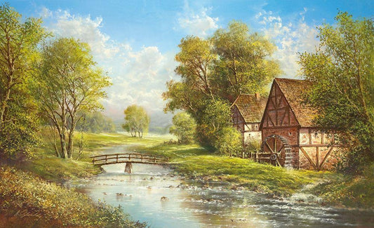 MILL AT THE RIVER White Modern Wood Framed Art Print with Double Matting by Glassl, Helmut