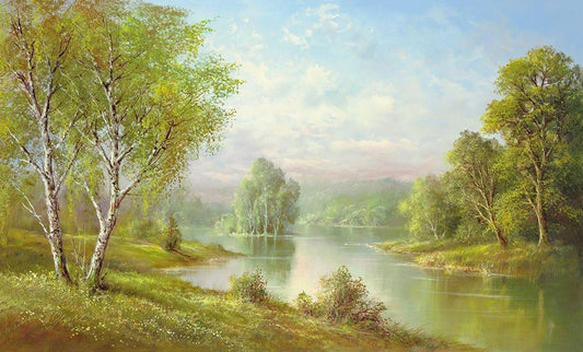 SLOWLY RIVER I White Modern Wood Framed Art Print with Double Matting by Priscepa, Igor