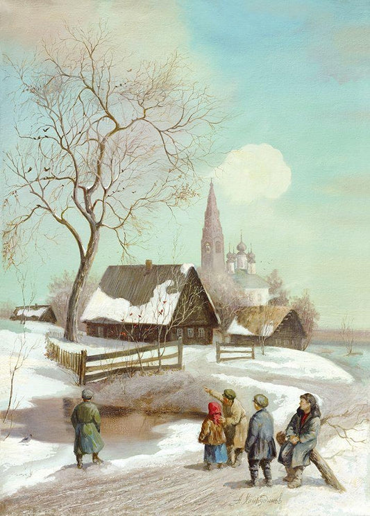 END OF WINTER White Modern Wood Framed Art Print with Double Matting by Chairudinov, A.