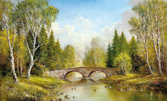 STONE BRIDGE White Modern Wood Framed Art Print with Double Matting by Glassl, Helmut
