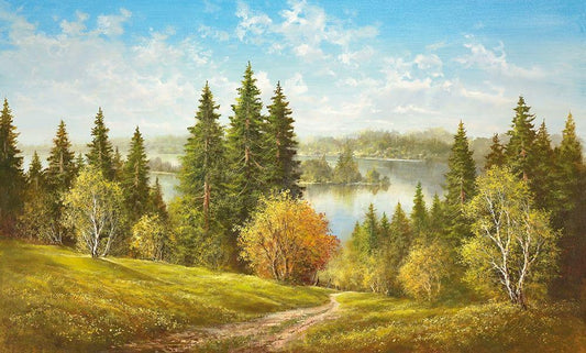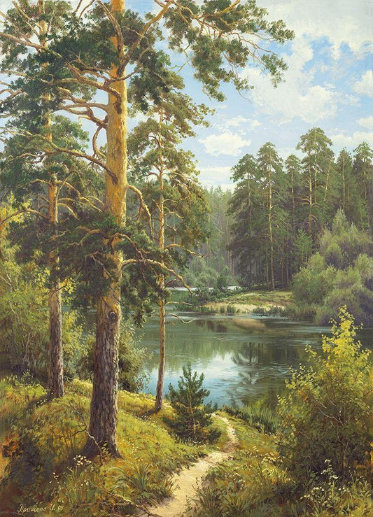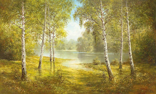 OVERLOOKING THE RIVER White Modern Wood Framed Art Print with Double Matting by Priscepa, Igor