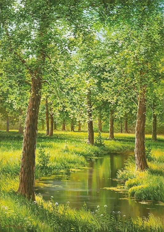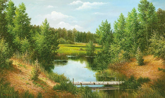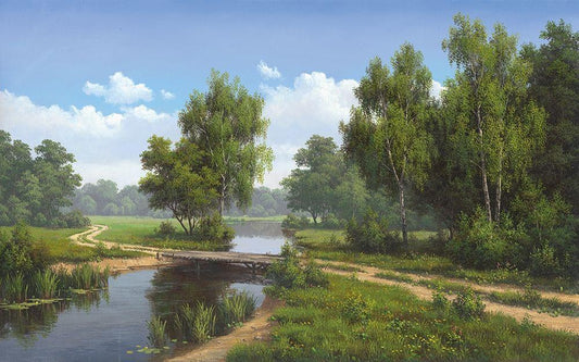 Forest Creek White Modern Wood Framed Art Print with Double Matting by Babichev