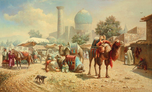 Caravan White Modern Wood Framed Art Print with Double Matting by Chairudinov, A.