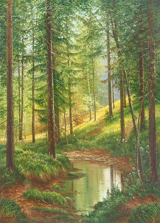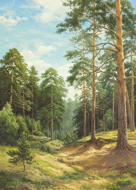 SUNLIT FOREST White Modern Wood Framed Art Print with Double Matting by Osipova, Svetlana