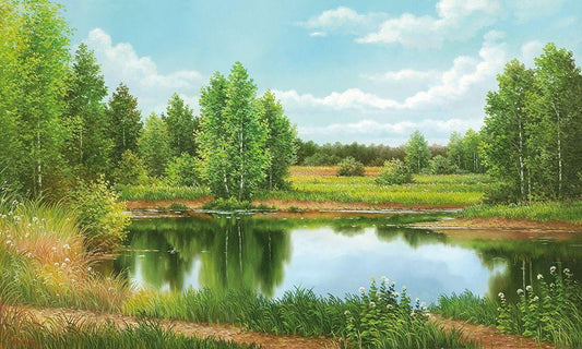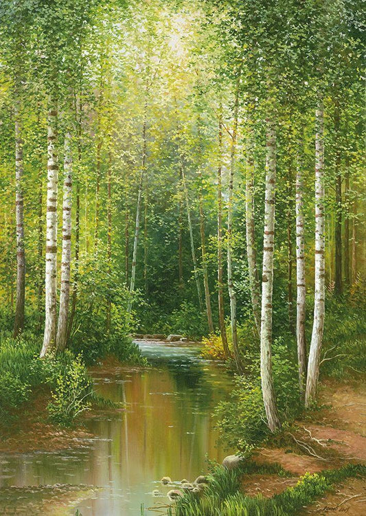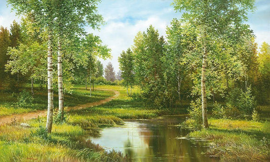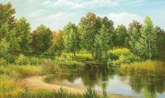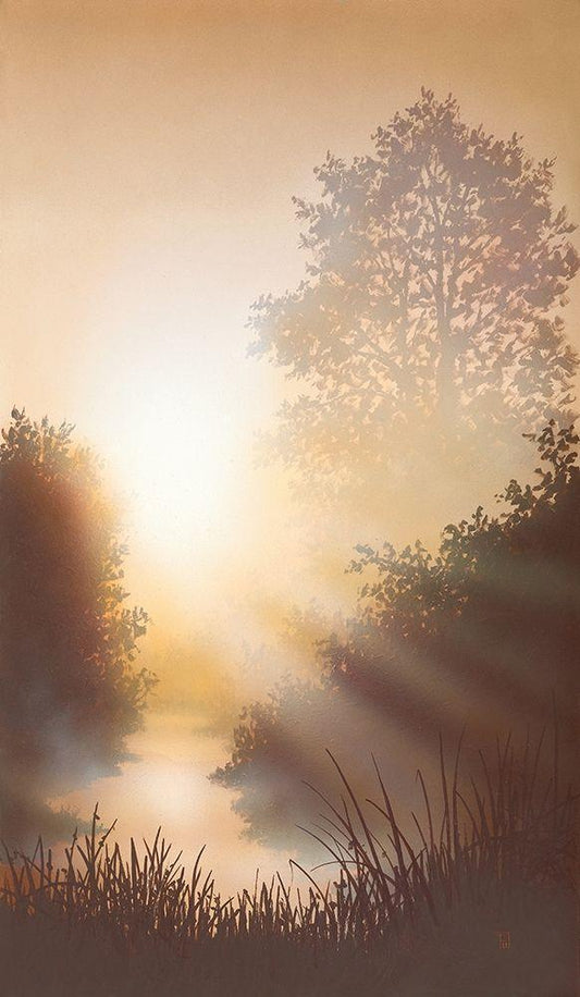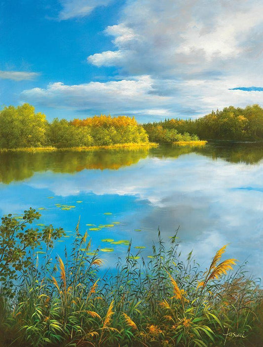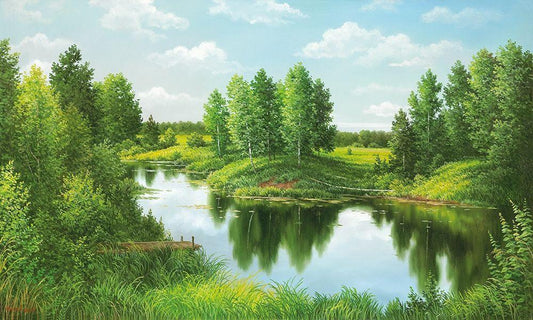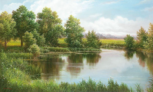 RIVER Landscape White Modern Wood Framed Art Print with Double Matting by Osipova, Svetlana