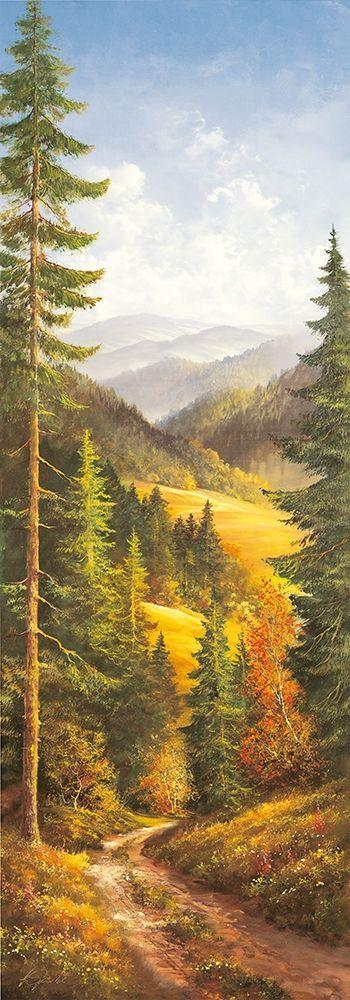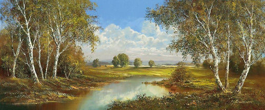 BIRCH LANE AT HORNI RYBNIKY White Modern Wood Framed Art Print with Double Matting by Buchner, H.