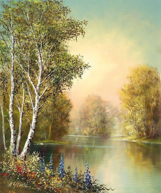 CARPATHIAN RIVER SCENE I White Modern Wood Framed Art Print with Double Matting by Glassl, Helmut