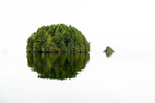 Green Island White Modern Wood Framed Art Print with Double Matting by Kostka, Vladimir
