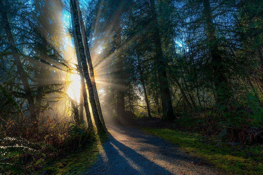 Sunlight Throught Trees White Modern Wood Framed Art Print with Double Matting by Kostka, Vladimir