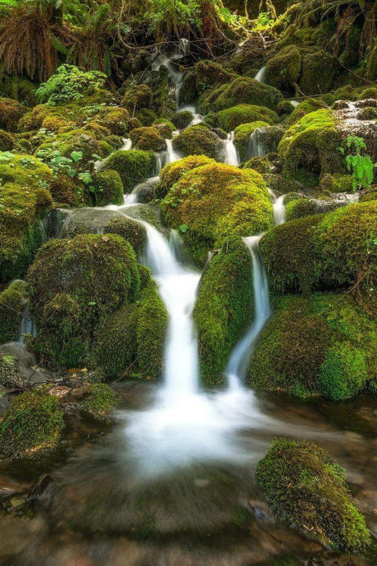 Waterfall I White Modern Wood Framed Art Print with Double Matting by Kostka, Vladimir