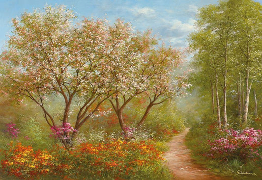 SPRING REVERIE White Modern Wood Framed Art Print with Double Matting by Schoelnhammer, Heinz