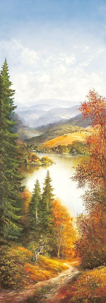 BIRCHES AT THE LAKE II White Modern Wood Framed Art Print with Double Matting by Glassl, Helmut