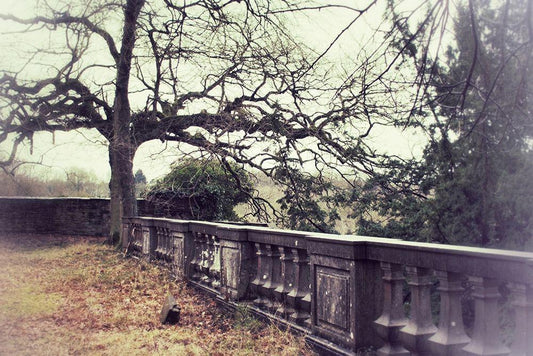 Tree And Fence Bw White Modern Wood Framed Art Print with Double Matting by Kostka, Vladimir
