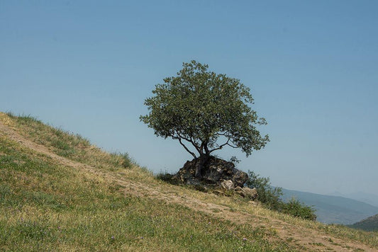 Tree On Hill White Modern Wood Framed Art Print with Double Matting by Carlier, Dick