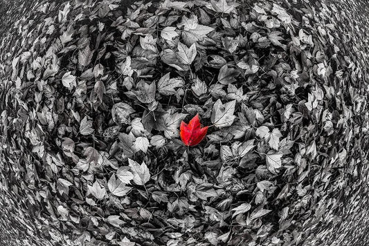 Red Leaf White Modern Wood Framed Art Print with Double Matting by Kostka, Vladimir