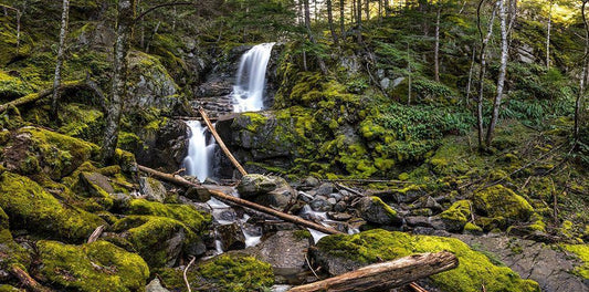 Stones And Waterfall White Modern Wood Framed Art Print with Double Matting by Kostka, Vladimir