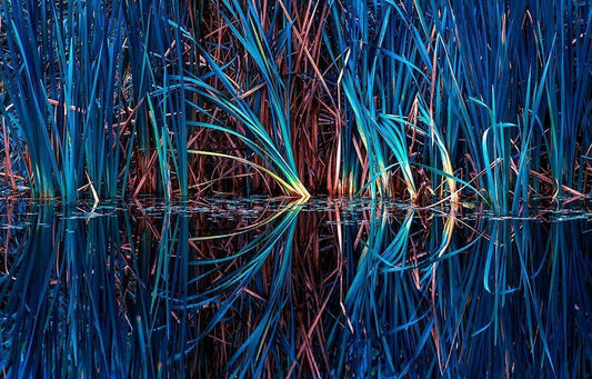 Blue Grass White Modern Wood Framed Art Print with Double Matting by Kostka, Vladimir
