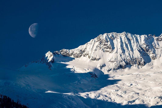Moon And Mountains White Modern Wood Framed Art Print with Double Matting by Kostka, Vladimir