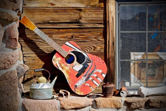 Guitar White Modern Wood Framed Art Print with Double Matting by Vizvary, Susan