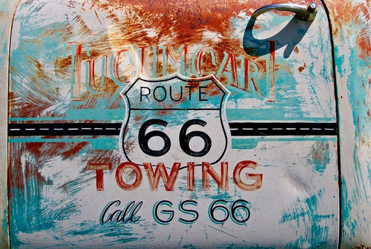 RT 66 Towing White Modern Wood Framed Art Print with Double Matting by Vizvary, Susan