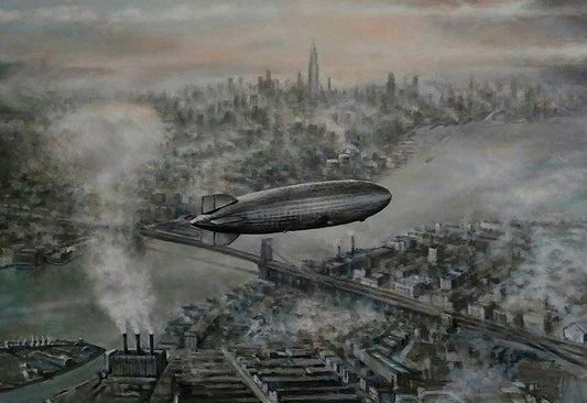 Zeppelin White Modern Wood Framed Art Print with Double Matting by Gipe, L.