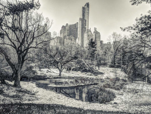 Central park with Lower Manhattan skyline, New York White Modern Wood Framed Art Print with Double Matting by Frank, Assaf