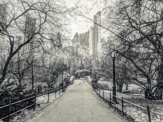 Pathway through Central park, New York White Modern Wood Framed Art Print with Double Matting by Frank, Assaf