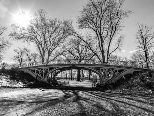 Walkway bridge in Central park, New York, FTBR-1920 White Modern Wood Framed Art Print with Double Matting by Frank, Assaf