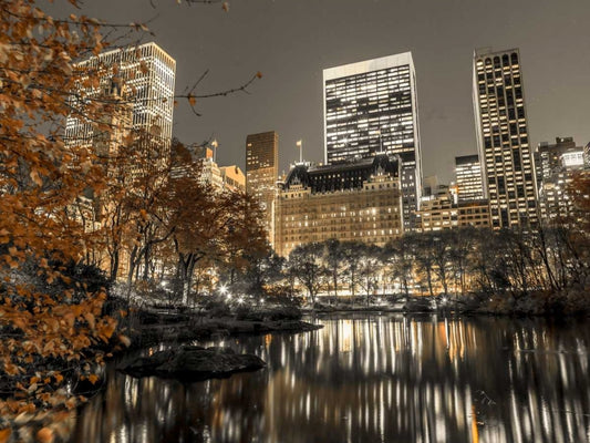 Evening view of Central Park in New York City White Modern Wood Framed Art Print with Double Matting by Frank, Assaf