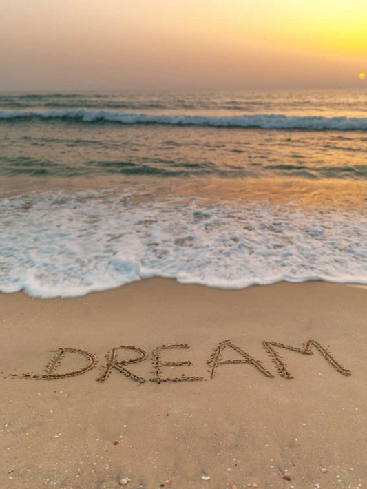 Sand writing - Word Dream written on beach White Modern Wood Framed Art Print with Double Matting by Frank, Assaf