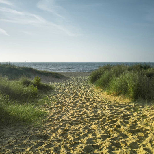 Sandy Beach White Modern Wood Framed Art Print with Double Matting by Frank, Assaf