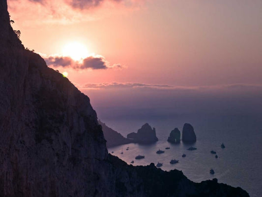 Sunset over the sea White Modern Wood Framed Art Print with Double Matting by Frank, Assaf